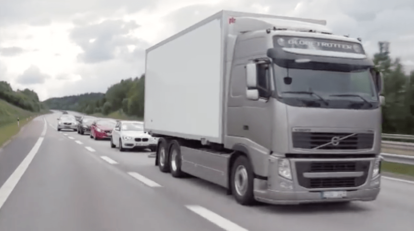 La viabilidad de la conducción autónoma con un transportista (Safe Road Trains for the Environment)