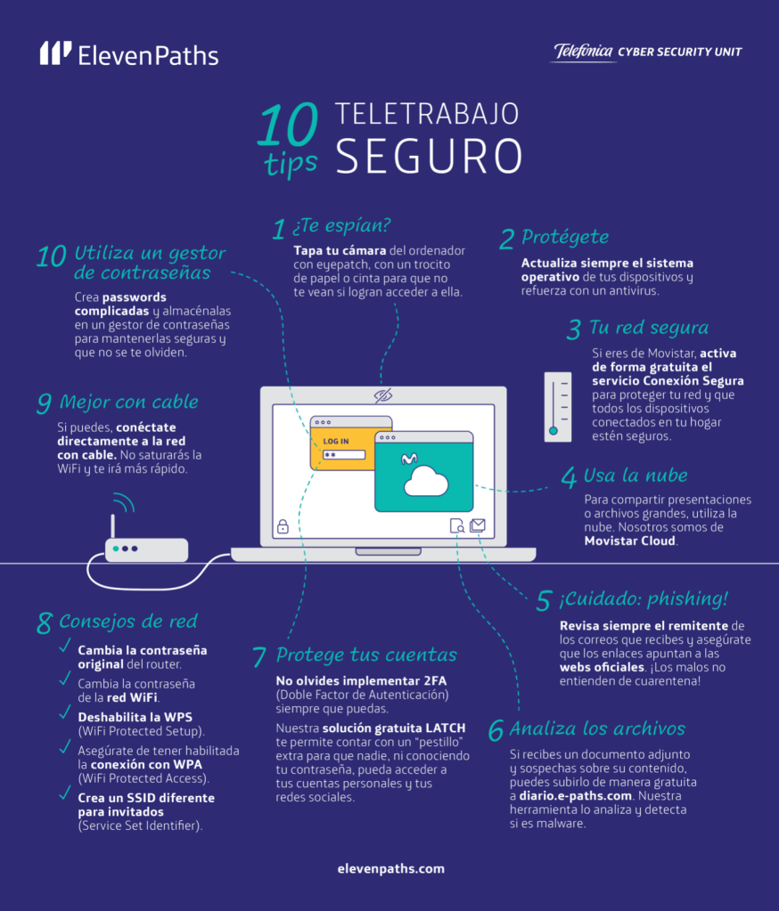 El Teletrabajo necesita de una seguridad informática y de redes imprescindible. Sin una estructura segurizada y actualizada constantemente, el teletrabajo no puede existir. Cualquier fuga de información se convierte así en un peligro latente de la existencia de la empresa. Lógicamente, la ciberseguridad tiene que incluirse dentro de un proyecto tecnológico que contenga aquellas herramientas que sean para eficaces para el modelo de negocio de cada empresa. Me refiero a: