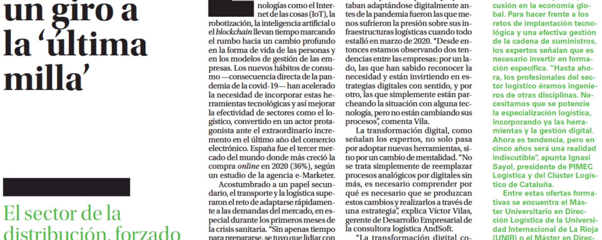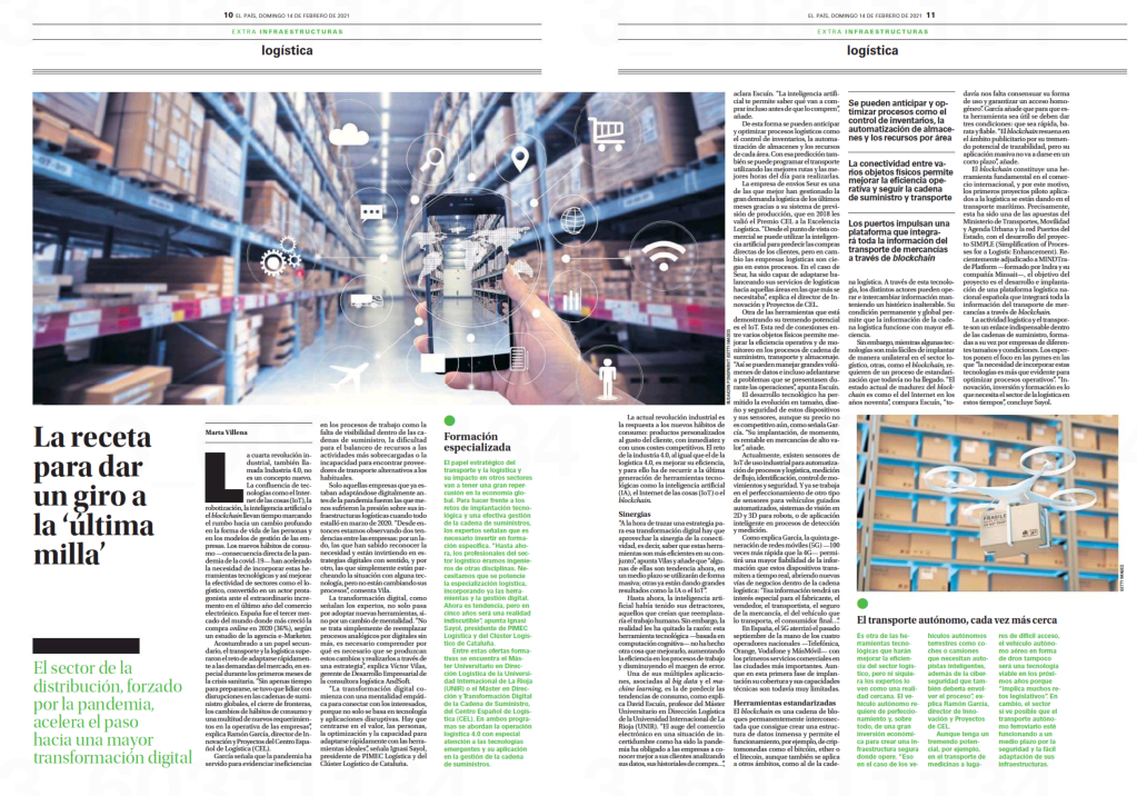 Participación en reportaje del periódico El País sobre la transformación digital del sector logístico