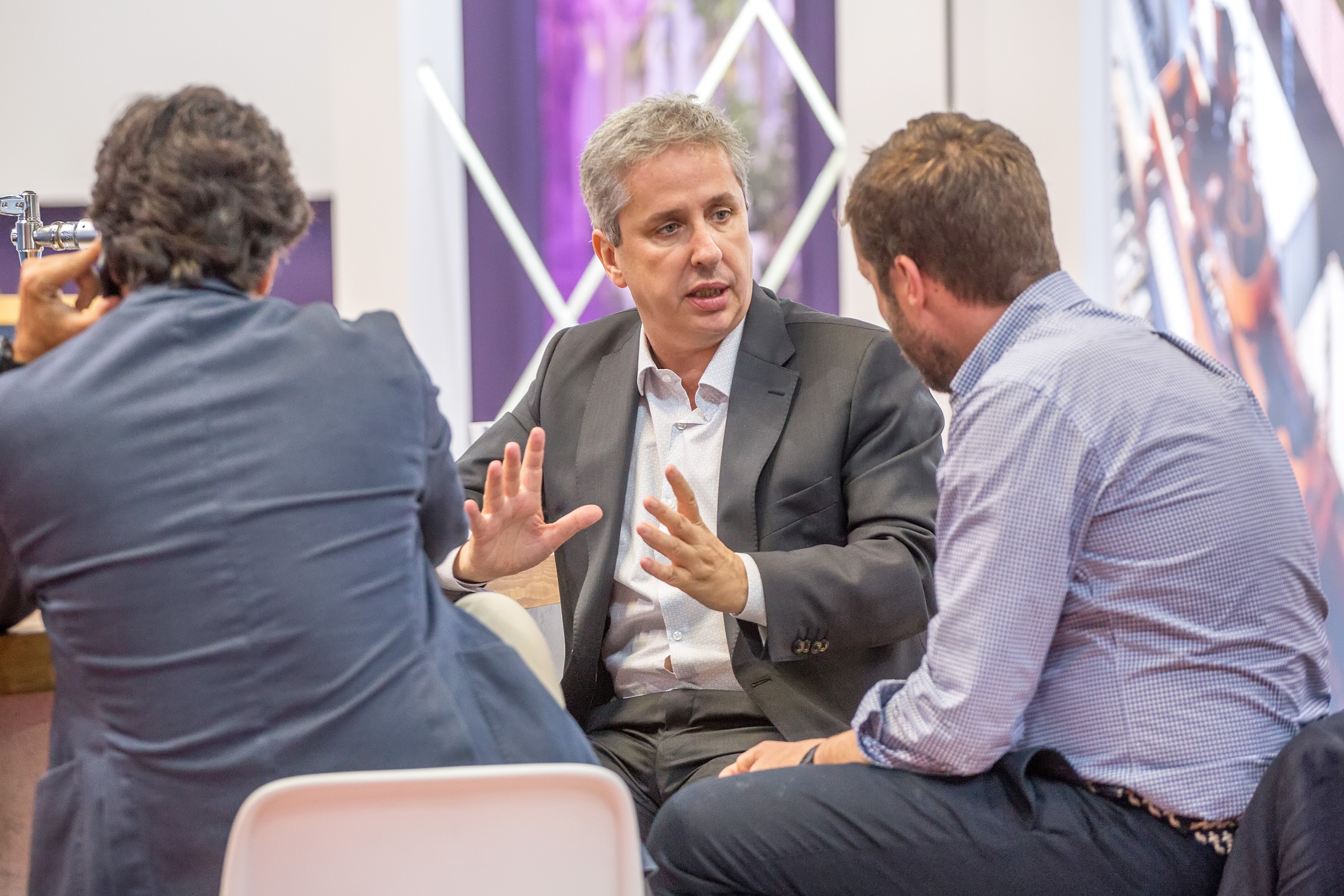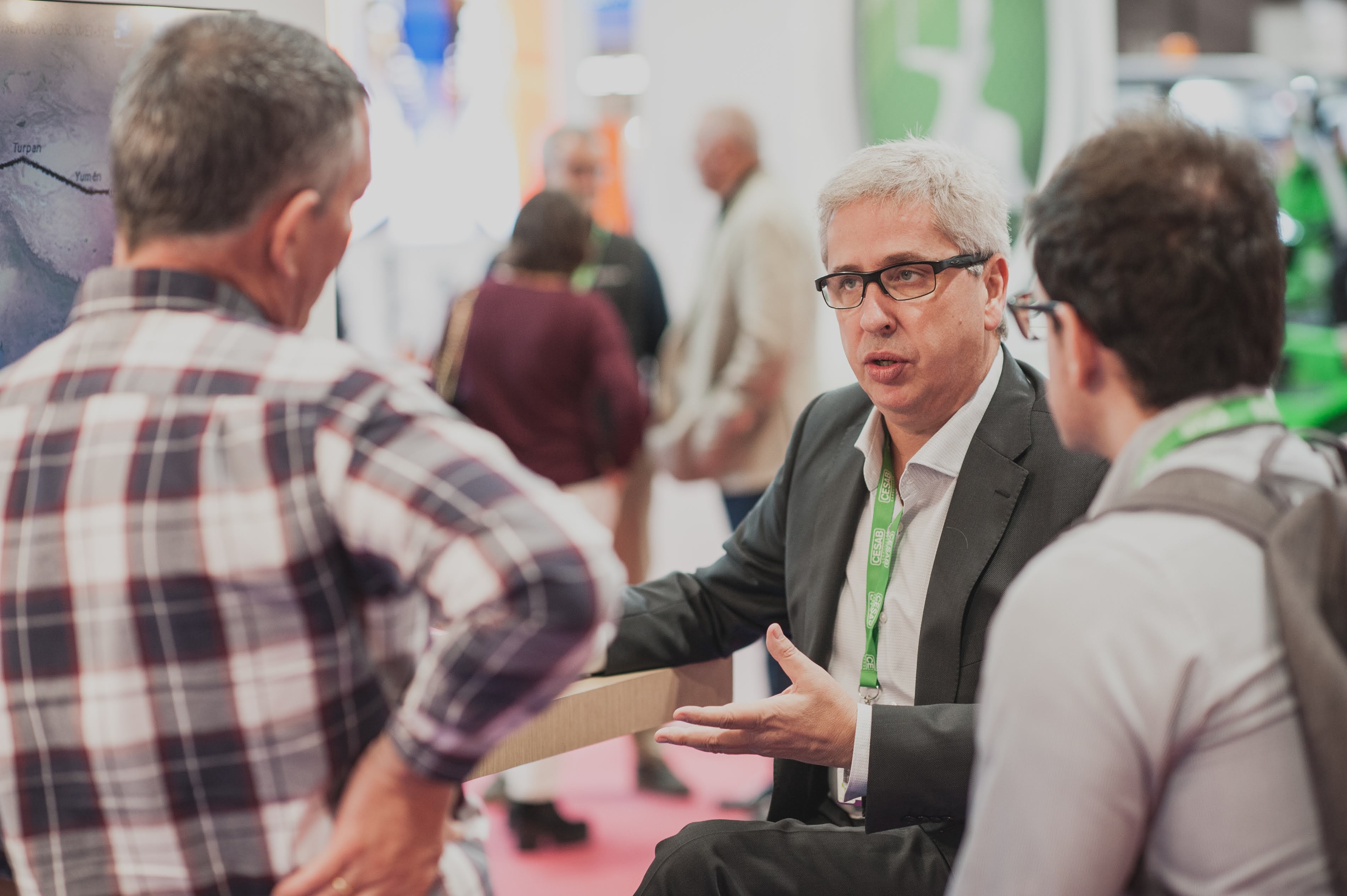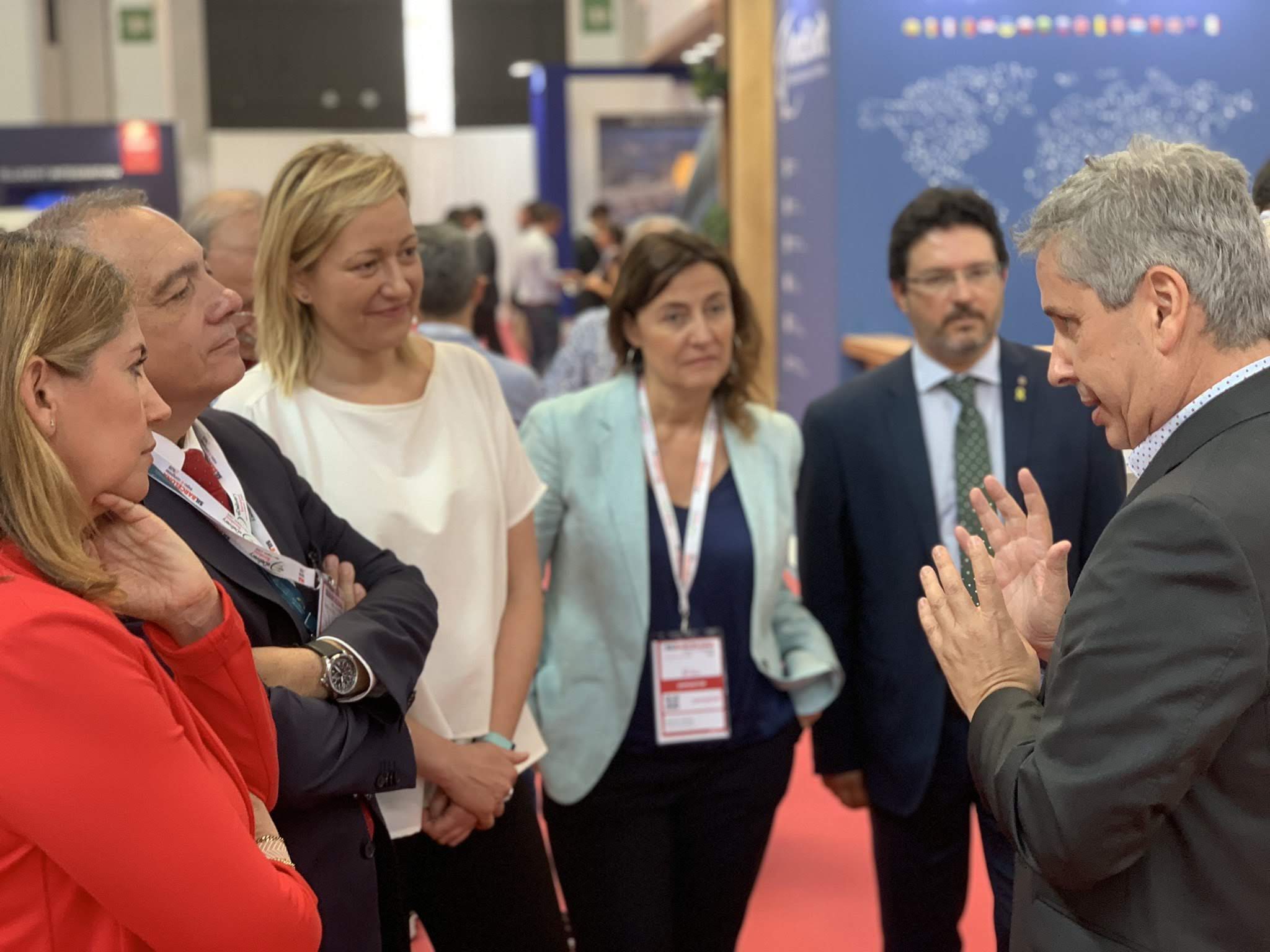 Víctor Vila hablando con Autoridades del SIL 2019 y Consorci de la Zona Franca de Barcelona Stand AndSoft